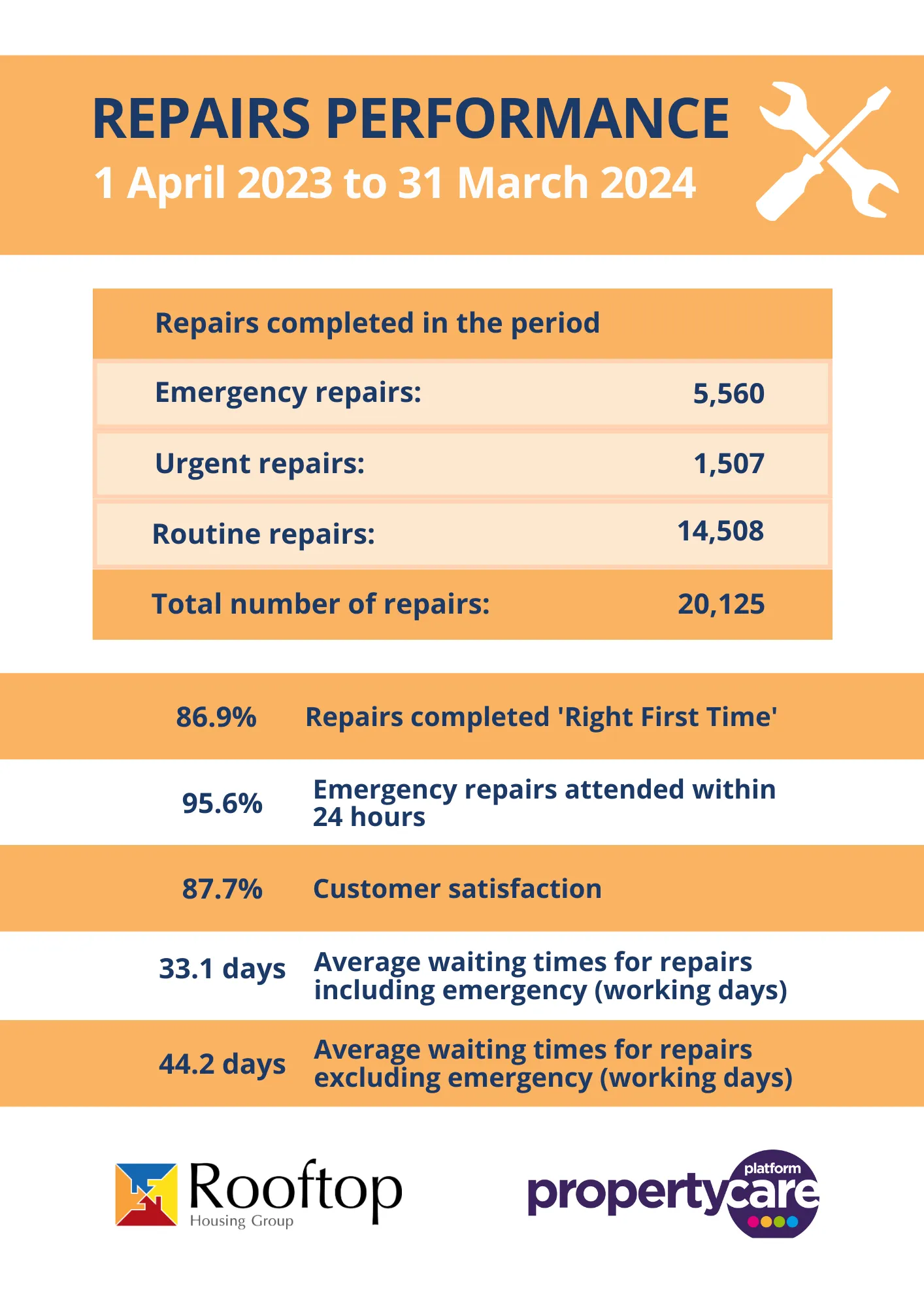 In the past 12 months up to 31 March, we carried out 20,125 repairs. This is more than 1,000 than previous years, and is why waiting times were longer than we had hoped.